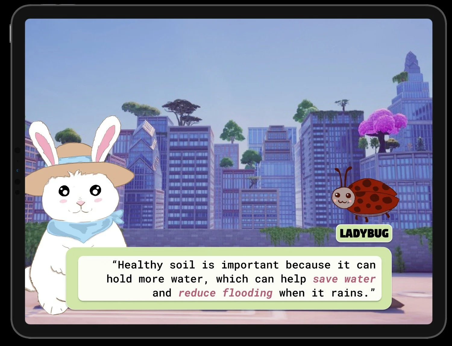 Garden Guardians is a children’s game that teaches gardening and sustainability through interactive play. Designed in Unreal Engine Fortnite and Figma with Procreate assets, it allows young players to plant virtual gardens, clean up environments, and complete fun eco-themed challenges, all while learning how their actions can make a real-world impact.